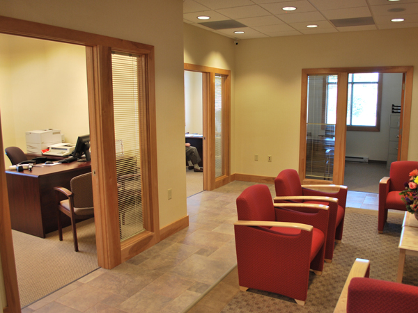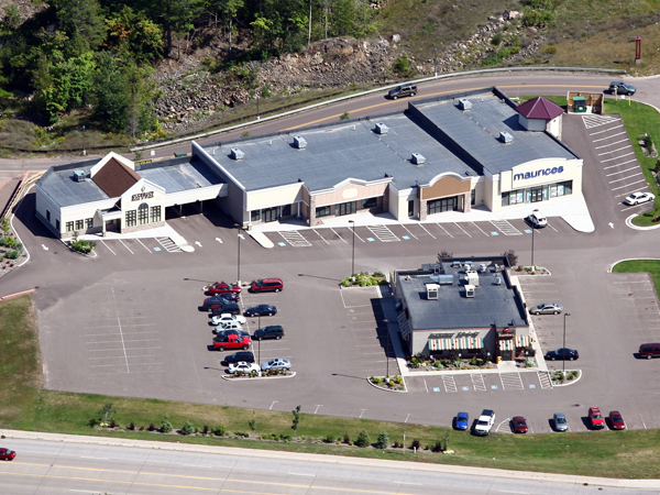 Built as part of the Ridgecrest Plaza Retail Center, the Superior National Bank & Trust building was designed by Division1 Design. The Houghton branch of the Hancock, Michigan-based banking institution integrates many of the same design elements as Superior National Bank & Trust’s other buildings for recognition of the Superior National brand. Division1 Design’s plan allows for plenty of natural light in the lobby and teller area with large aluminum windows and high vaulted ceilings. The waiting area was designed to allow customers a space to relax and enjoy the warmth of an electric fireplace and television mounted above. A drive-through was incorporated into the design of the building and acts as a connection to the adjacent retail center, blending the two buildings together.